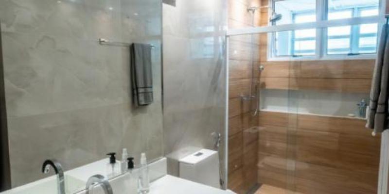 Banheiros, cozinha e área de serviço reformulados, proporcionando modernidade, funcionalidade e design contemporâneo.